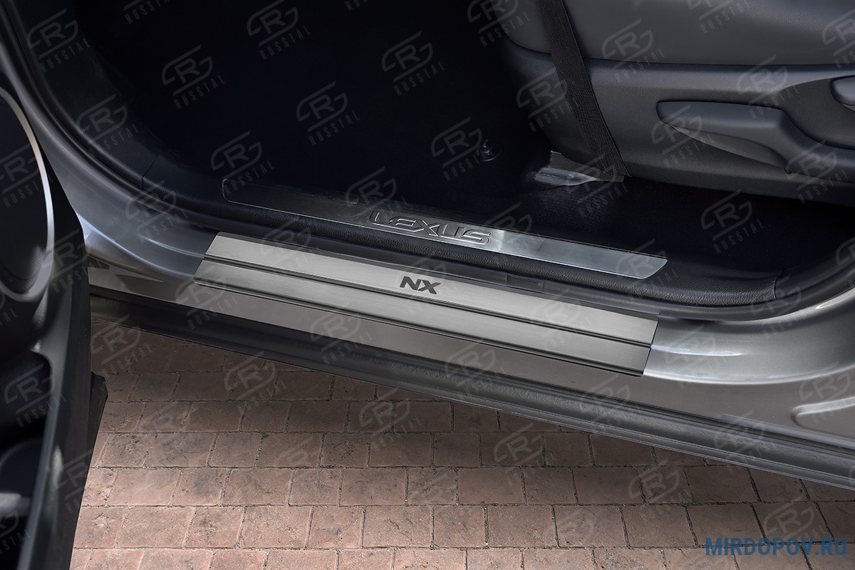 Накладки на пороги шлифованные с надписью RUSSTAL для Lexus NX (2014-2017) № LEXNX14-03