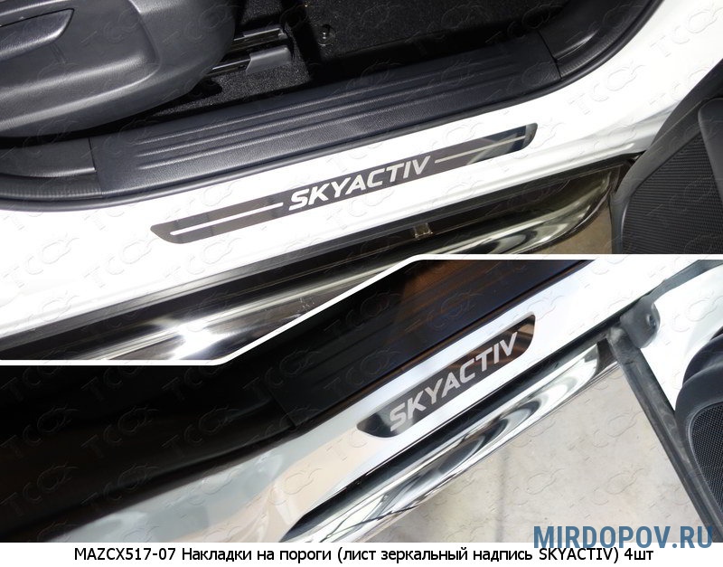 Накладки на пороги (зеркальные с надписью SKYACTIV) Mazda CX-5 (2017-2025) № MAZCX517-07