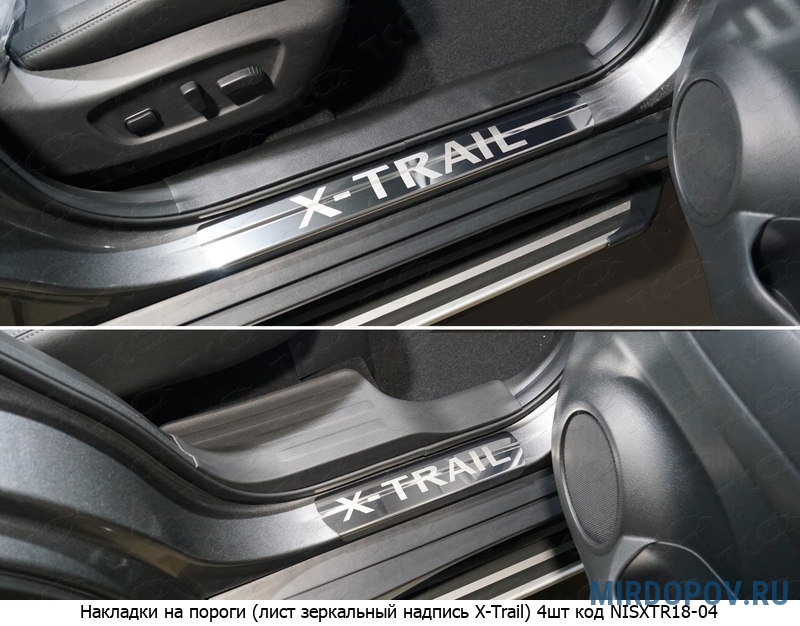 Накладки на пороги (лист зеркальный с надписью X-Trail) Nissan X-Trail (2018-2023) № NISXTR18-04