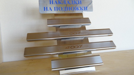 Накладки на пороги выполнены ИНДИВИДУАЛЬНО для Пежо 4007, из высоколегированной нержавеющей стали от Германского производителя марки KRUPP
