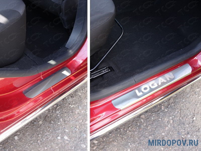 Накладки на пороги (лист шлифованный с надписью) Renault Logan (2018-2024) № RENLOG18-04