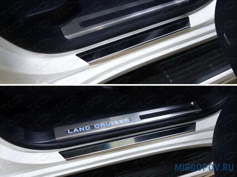 Накладки на пороги с гибом (лист зеркальный) Toyota Land Cruiser 200 (2015-2021) № TOYLC20015-20