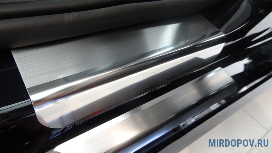 В комплект накладок входит: 4-е передние и 4-е задние накладки на пороги с загнутой кромкой