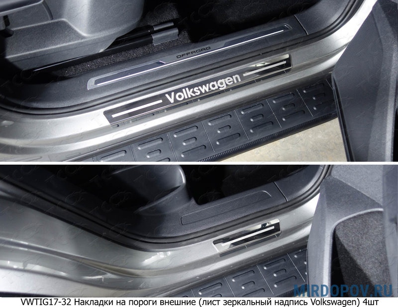 Накладки на внешние пороги (зеркальные с надписью Volkswagen) Volkswagen Tiguan (2017-2024) № VWTIG17-32