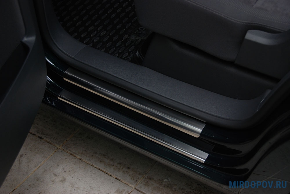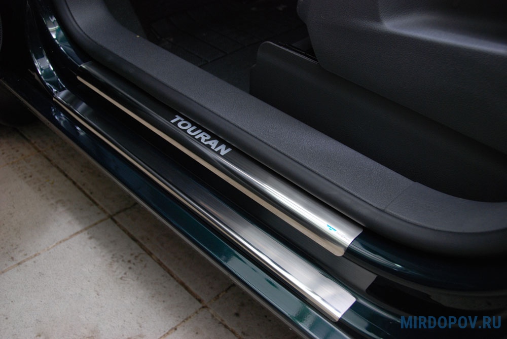 Накладки на пороги выполнены ИНДИВИДУАЛЬНО для Volkswagen Touran, из высоколегированной нержавеющей стали от Германского производителя марки KRUPP