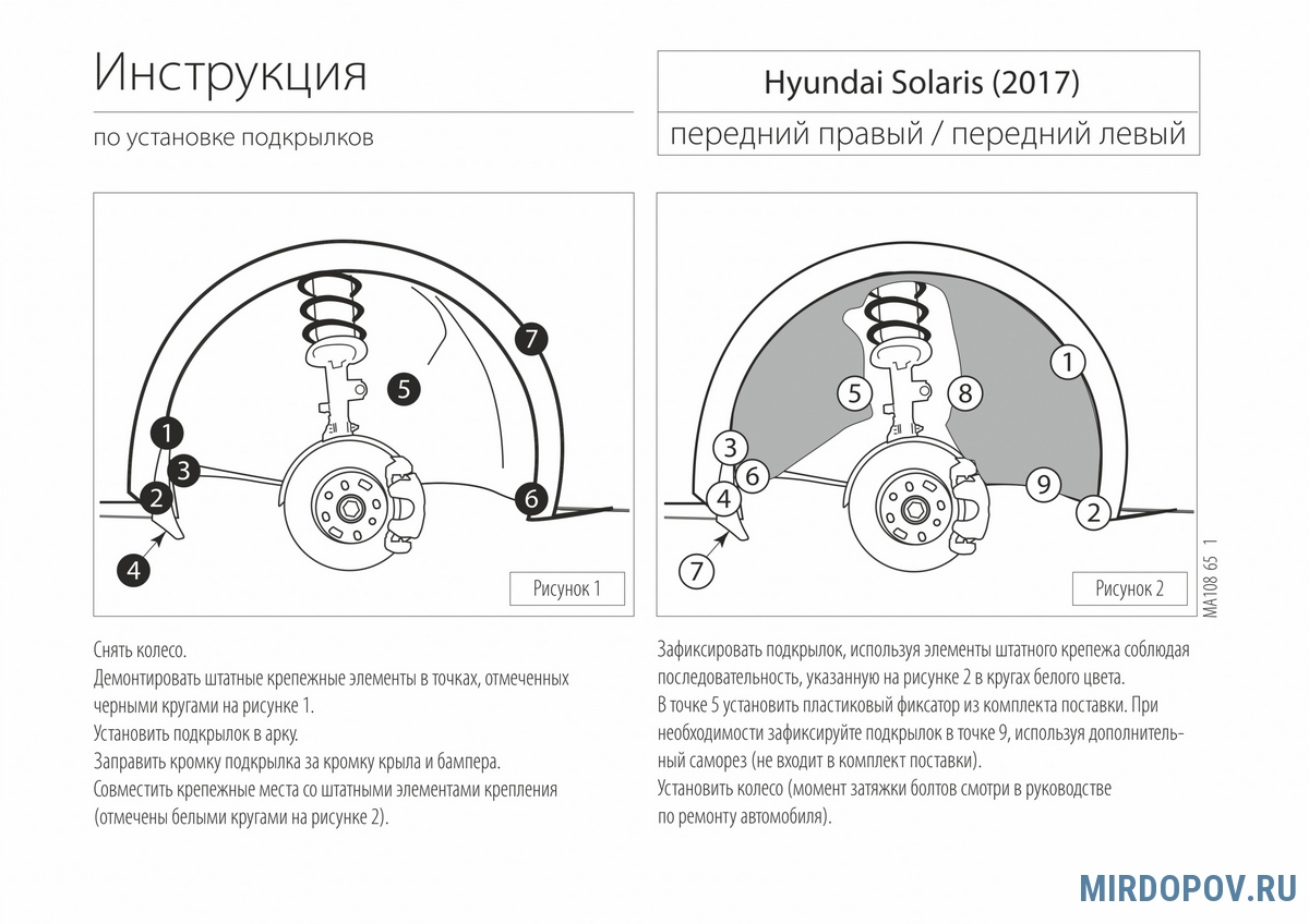 | Установка подкрылка на 1 колёсную арку | 700 руб. |