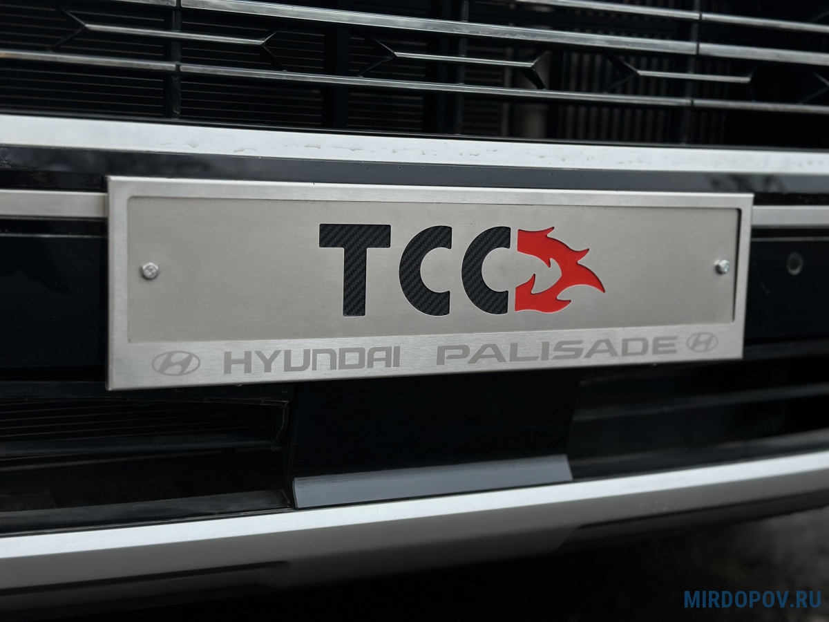 Рамка номерного знака ТСС с гравировкой для Hyundai Palisade (2021-2026) № HYUNPAL-03RN