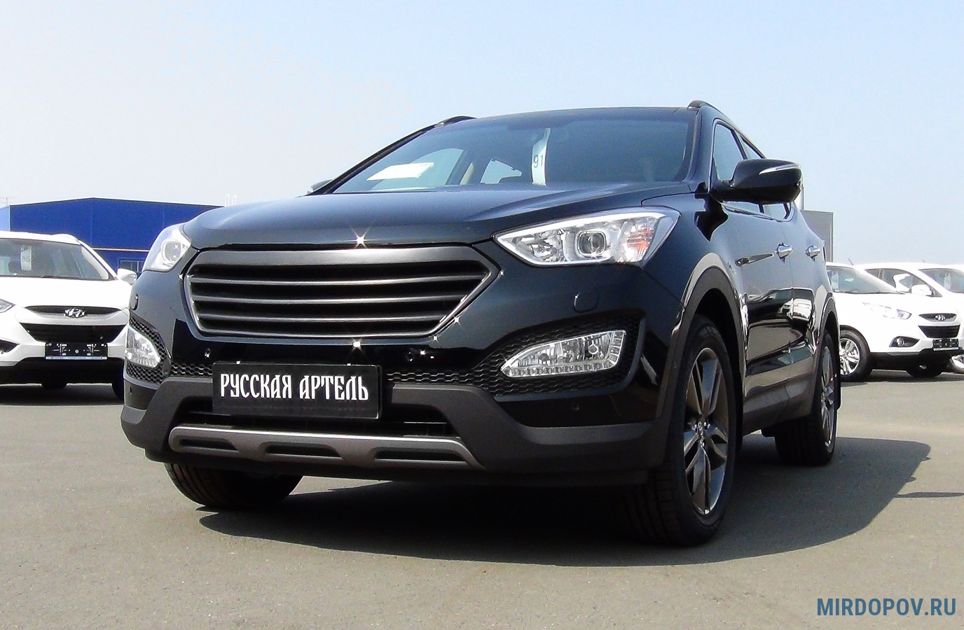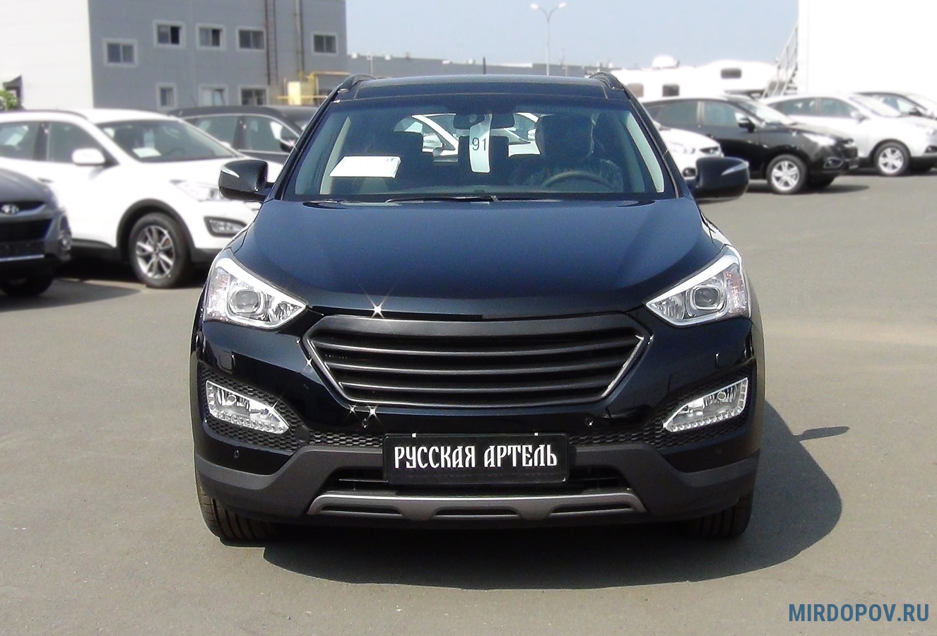 Решётка радиатора с черной сеткой Hyundai Santa Fe (2013-2015) № RRHSFN-018850