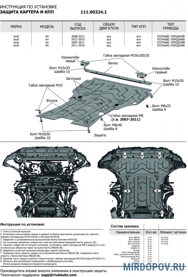 Защита картера и КПП (сталь) Автоброня для Audi A4 (2008-2015) № 111.00324.1