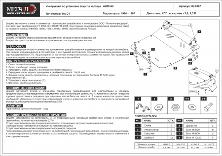 Защита картера (сталь) Шериф для Audi A6 (1994-1997) № 02.0087