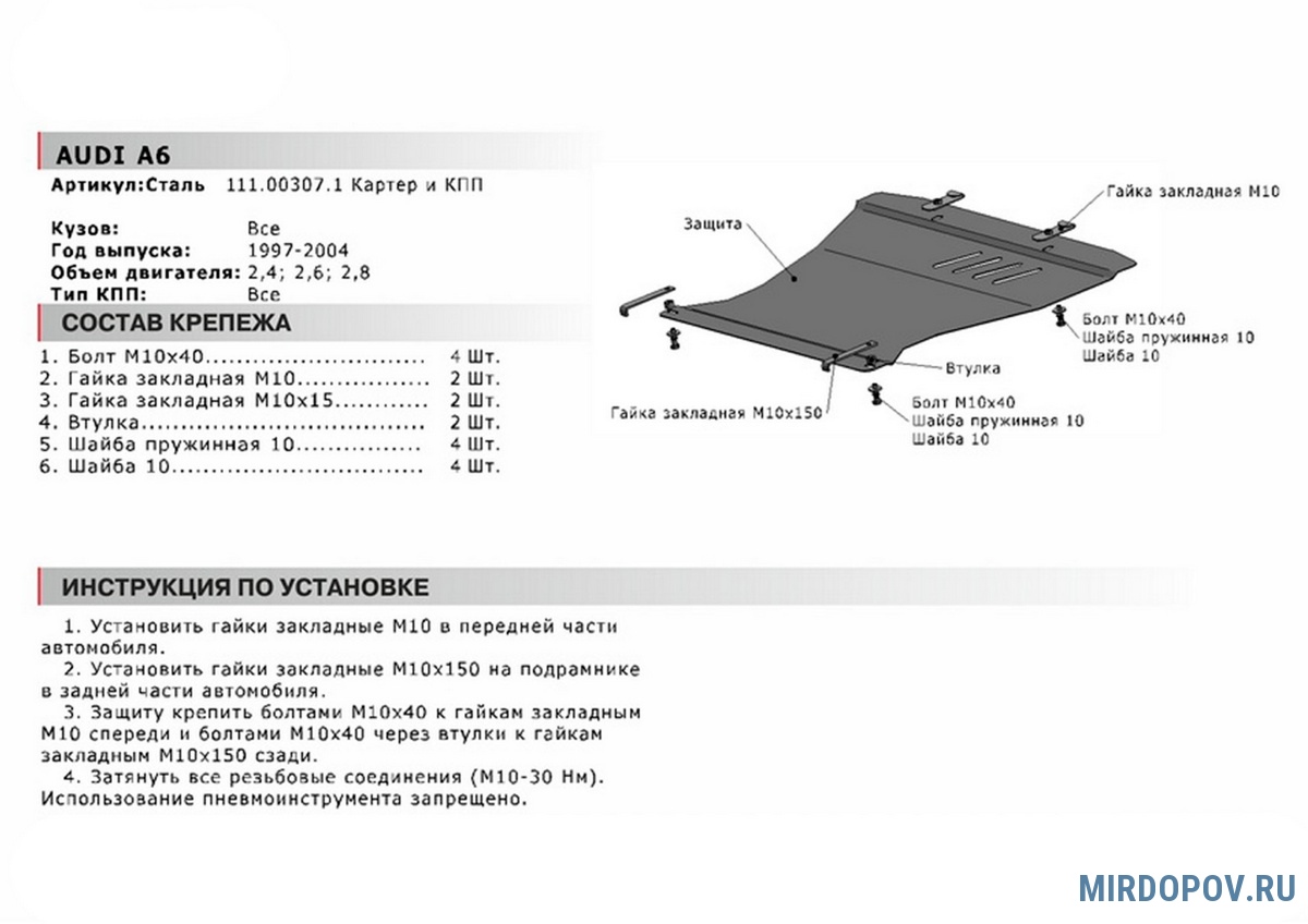 - Аксессуары обеспечивают надежную защиту подкапотного пространства со стороны днища авто.