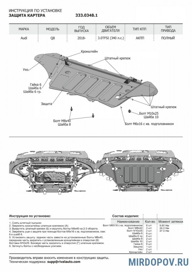 Алюминиевые защиты картера Rival надежно защищают днище вашего автомобиля от повреждений при наезде на бордюры, а также выполняют эстетическую функцию при установке на высокие автомобили.