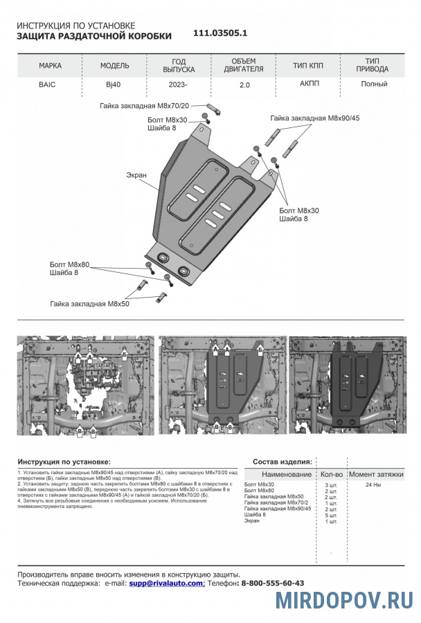| Установка защиты картера, КПП, дифференциала, раздатки, радиатора - 1 деталь | 1000 руб. |