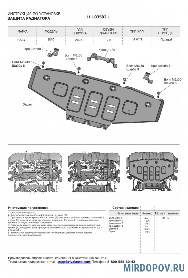 - Простая установка, что обусловлено совпадением элементов крепежа со штатными отверстиями.