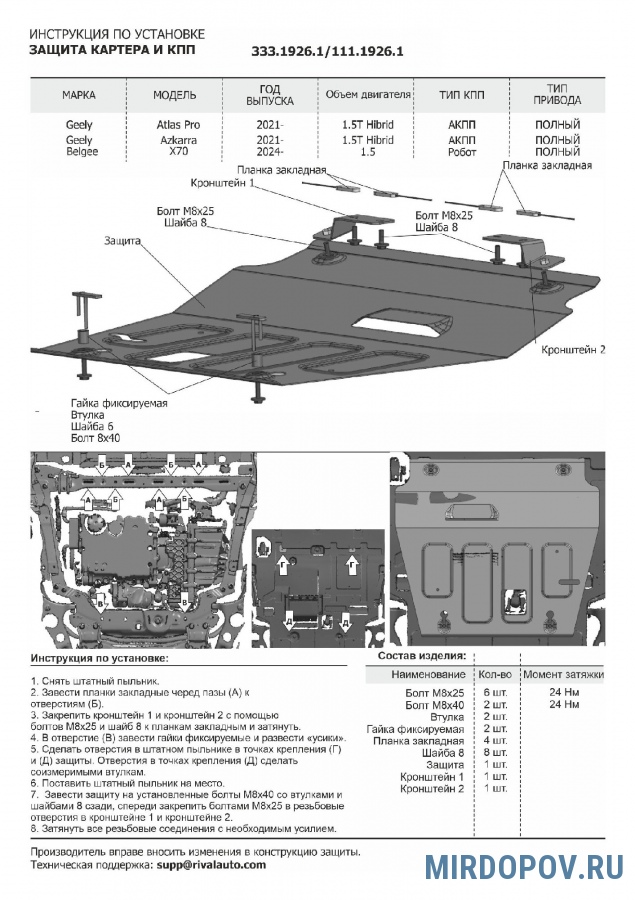 | Установка защиты картера, КПП, дифференциала, раздатки, радиатора - 1 деталь | 1000 руб. |
