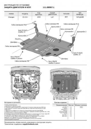 Защита картера и КПП (сталь) Автоброня для Changan CS35 Plus (2019-2023) № 111.08907.1