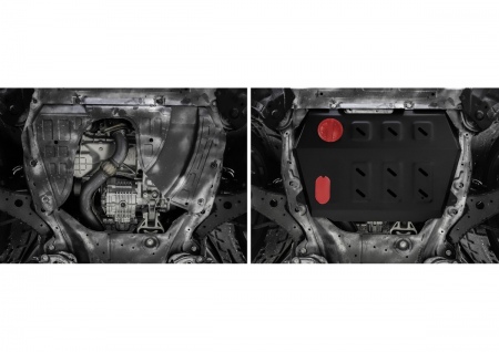 - Наличие технологических отверстий для беспрепятственной замены технических жидкостей и масел. Это позволяет сэкономить время и силы за счет отсутствия необходимости в демонтаже защиты.