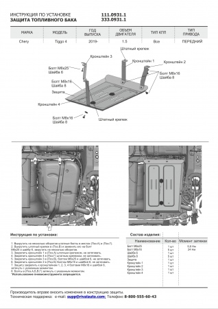 Защита топливного бака (алюминий) Rival для Chery Tiggo 4 (2019-2022) № 333.0931.1