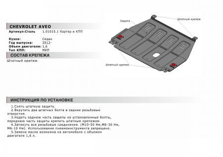 Защита картера и КПП (сталь) Автоброня для Chevrolet Aveo (2012-2019) № 1.01015.1