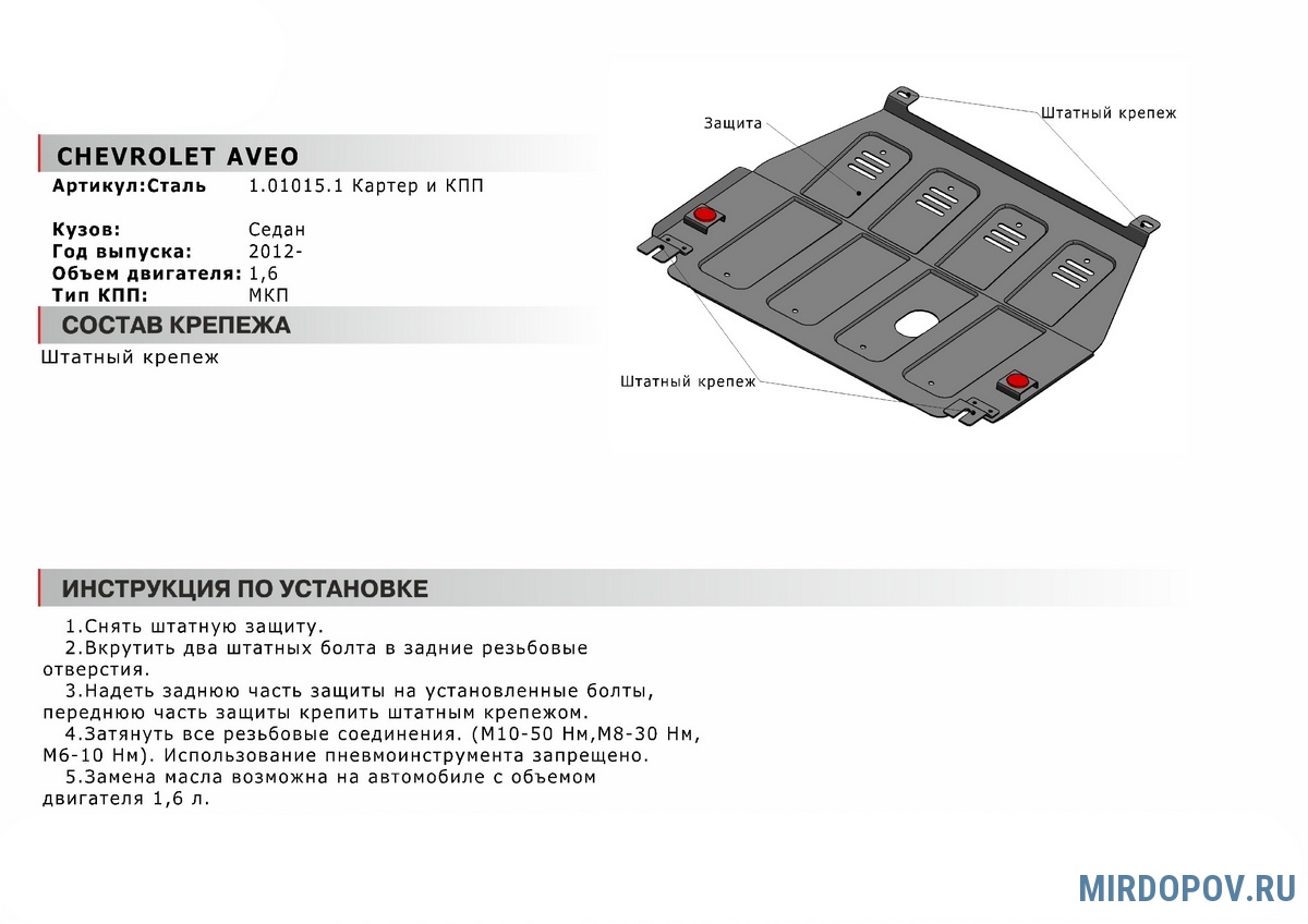 - Наличие технологических отверстий для беспрепятственной замены технических жидкостей и масел. Это позволяет сэкономить время и силы за счет отсутствия необходимости в демонтаже защиты.