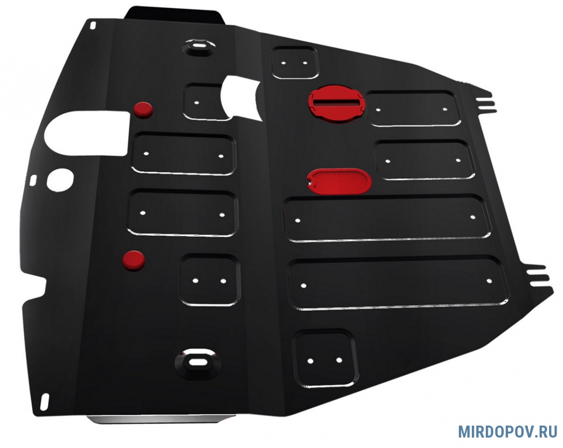 - Наличие технологических отверстий для беспрепятственной замены технических жидкостей и масел. Это позволяет сэкономить время и силы за счет отсутствия необходимости в демонтаже защиты.