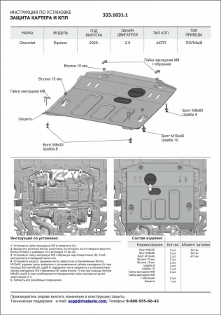Защита картера и КПП (алюминий) Rival для Chevrolet Equinox (2021-2025) № 333.1031.1