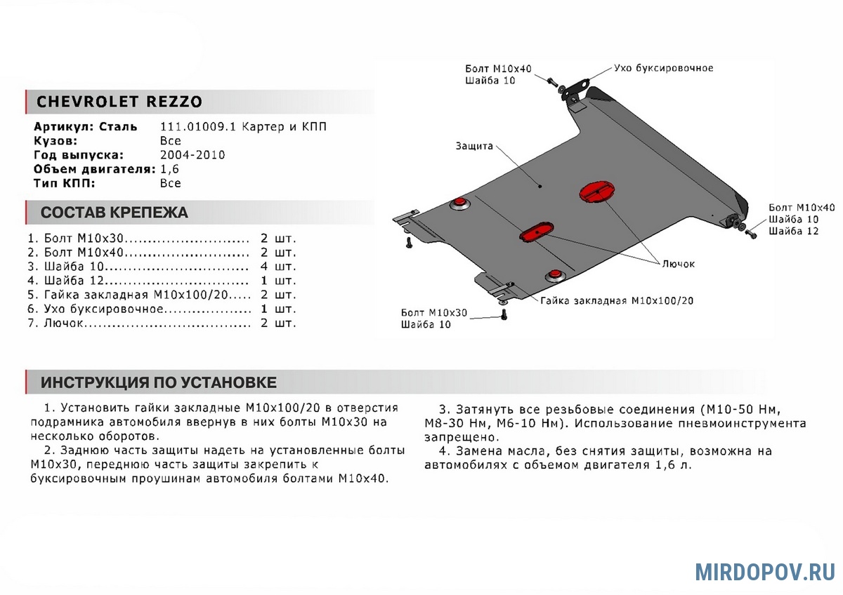 - Наличие технологических отверстий для беспрепятственной замены технических жидкостей и масел. Это позволяет сэкономить время и силы за счет отсутствия необходимости в демонтаже защиты.