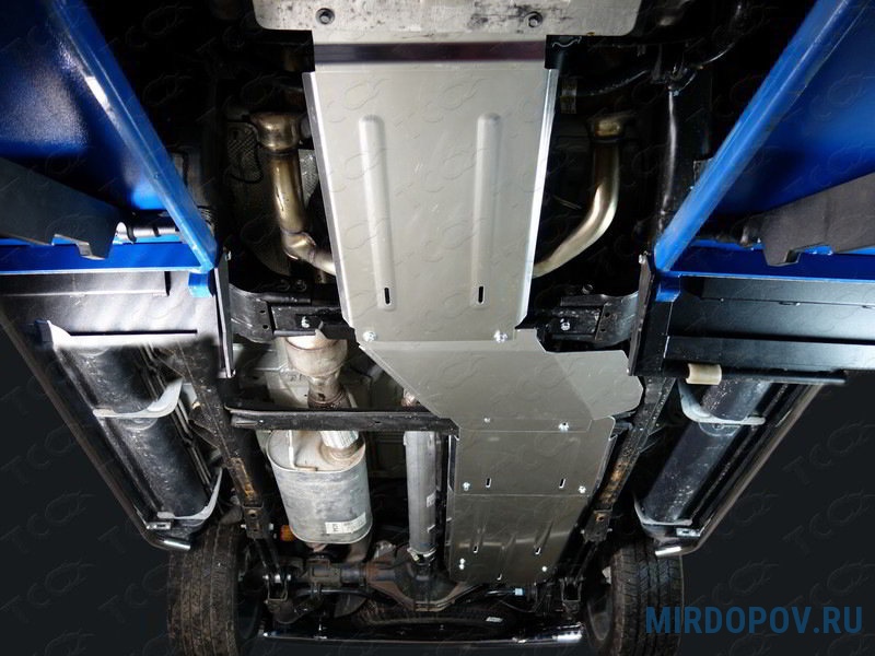 Защита картера представляет собой кузовной элемент, предназначенный для защиты моторного отсека снизу. Конструкция аксессуара позволяет закрыть не только сам двигатель, но также другие важные механизмы (коробка переключения передач, блок сцепления, картер). Главным предназначением защиты картера ТСС выступает предотвращение ударов и механических повреждений основных узлов автомобиля, а также защита нижней части подкапотного пространства от попадания грязи, камней и других инородных предметов.