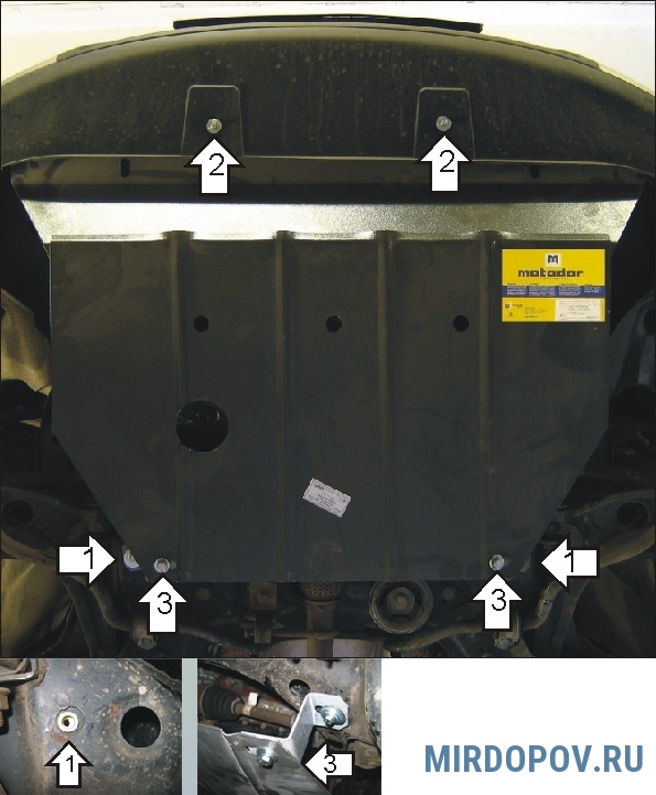 Все защиты картера устанавливаются в штатные места и не требуют никаких доработок!