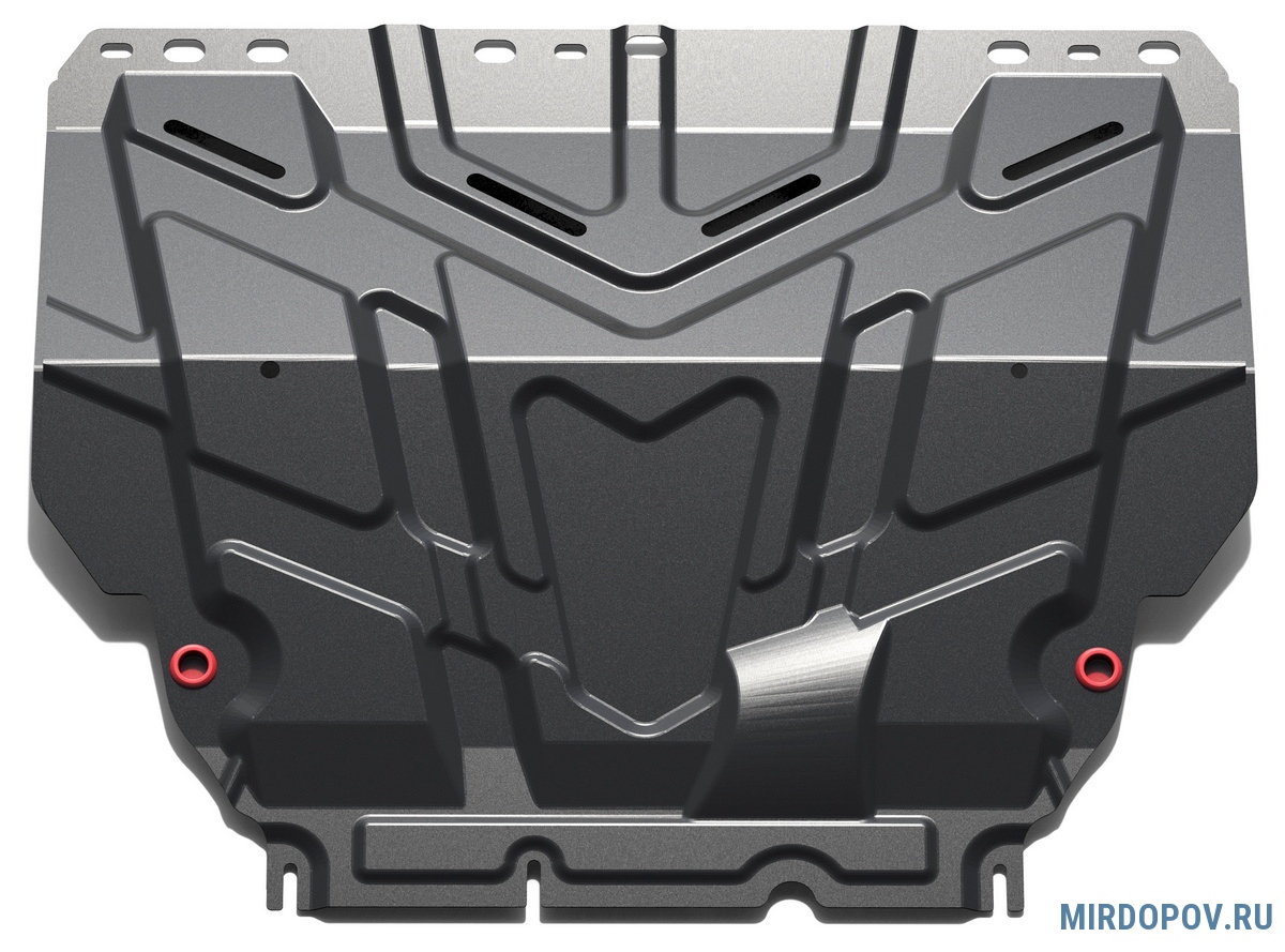 - Наличие технологических отверстий для беспрепятственной замены технических жидкостей и масел. Это позволяет сэкономить время и силы за счет отсутствия необходимости в демонтаже защиты.