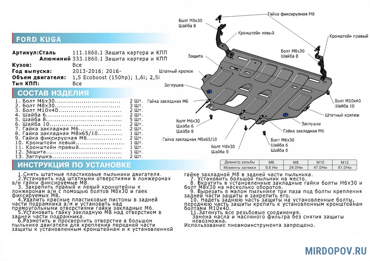 | Установка защиты картера, КПП, дифференциала, раздатки, радиатора - 1 деталь | 1000 руб. |