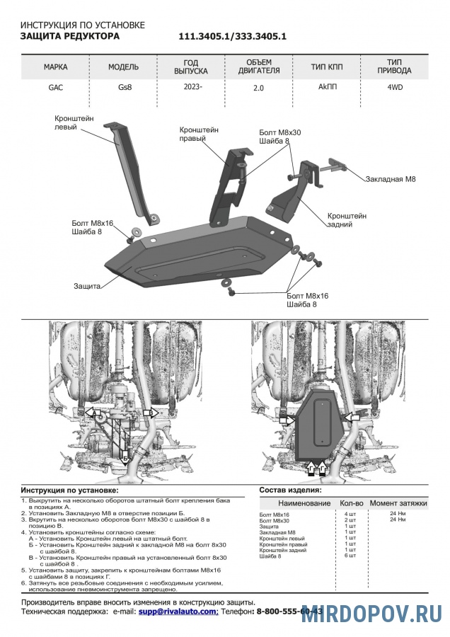Защита редуктора (алюминий) Rival для GAC GS8 (2023-2025) № 333.3405.1