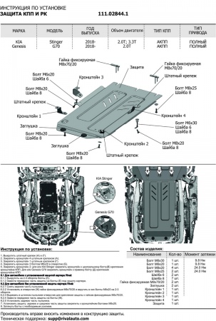 Защита КПП и РК (сталь) Автоброня для Genesis G70 (2018-2025) № 111.02844.1