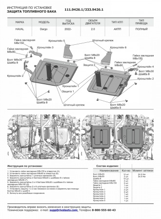Защита топливного бака (сталь) Rival для Haval F7x (2025-2026) № 111.9426.1