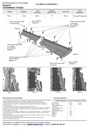 Защита топливных трубок (алюминий) Rival для Haval H3 (2024-2025) № 333.9433.1