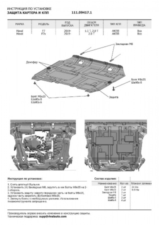 Защита картера и КПП (сталь) Автоброня для Haval H6 (2014-2020) № 111.09417.1