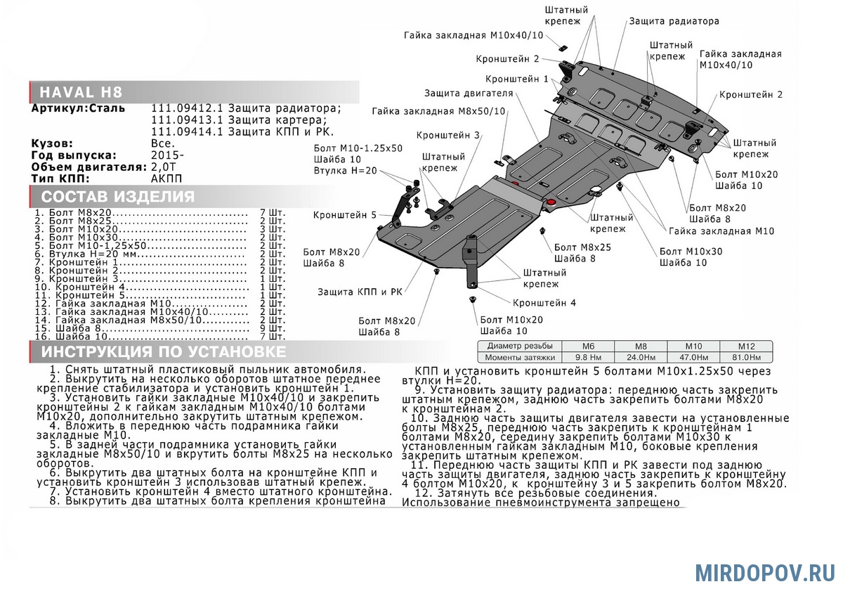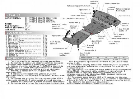 - Защита устанавливается в штатные места кузова автомобиля.