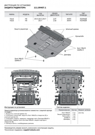 Комплект защит радиатор и картер и КПП и РК (сталь) Автоброня для Haval H9 (2015-2024) № K111.09418.1