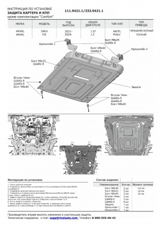 Защита картера и КПП (алюминий) Rival для Haval Jolion (2021-2025) № 333.9421.1