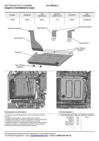 Защита топливного бака (сталь) Автоброня для Haval Jolion (2021-2025) № 111.09422.1