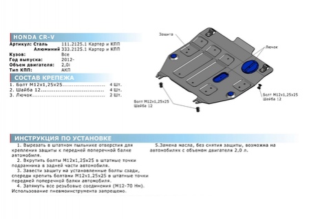 | Установка защиты картера, КПП, дифференциала, раздатки, радиатора - 1 деталь | 1000 руб. |