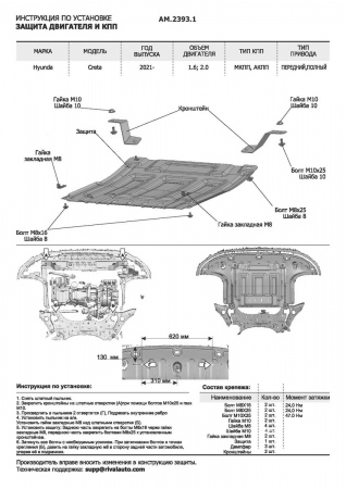 Защита картера и КПП (сталь) AutoMax для Hyundai Creta (2021-2025) № AM.2393.1