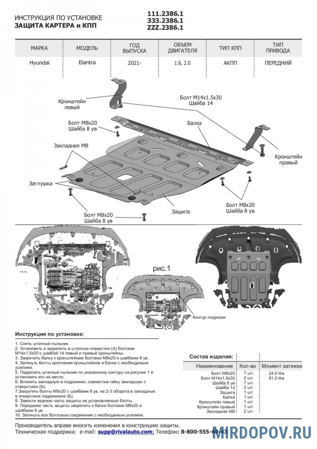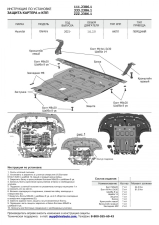 Защита картера и КПП (алюминий) Rival для Hyundai Elantra (2020-2023) № 333.2386.1
