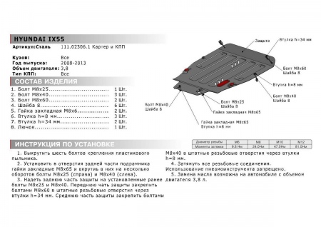 Защита картера и КПП (сталь) Автоброня для Hyundai i55 (2009-2013) № 111.02306.1
