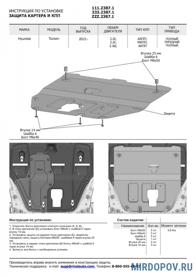 Комплект защит (сталь) Rival для Hyundai Tucson (2021-2025) № K111.2390.1