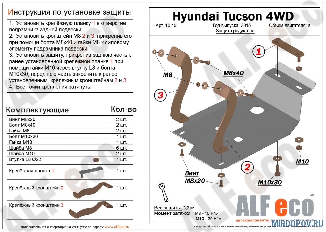 Защита редуктора (сталь) Alfeco Hyundai Tucson (2015-2021) № ALF1040st