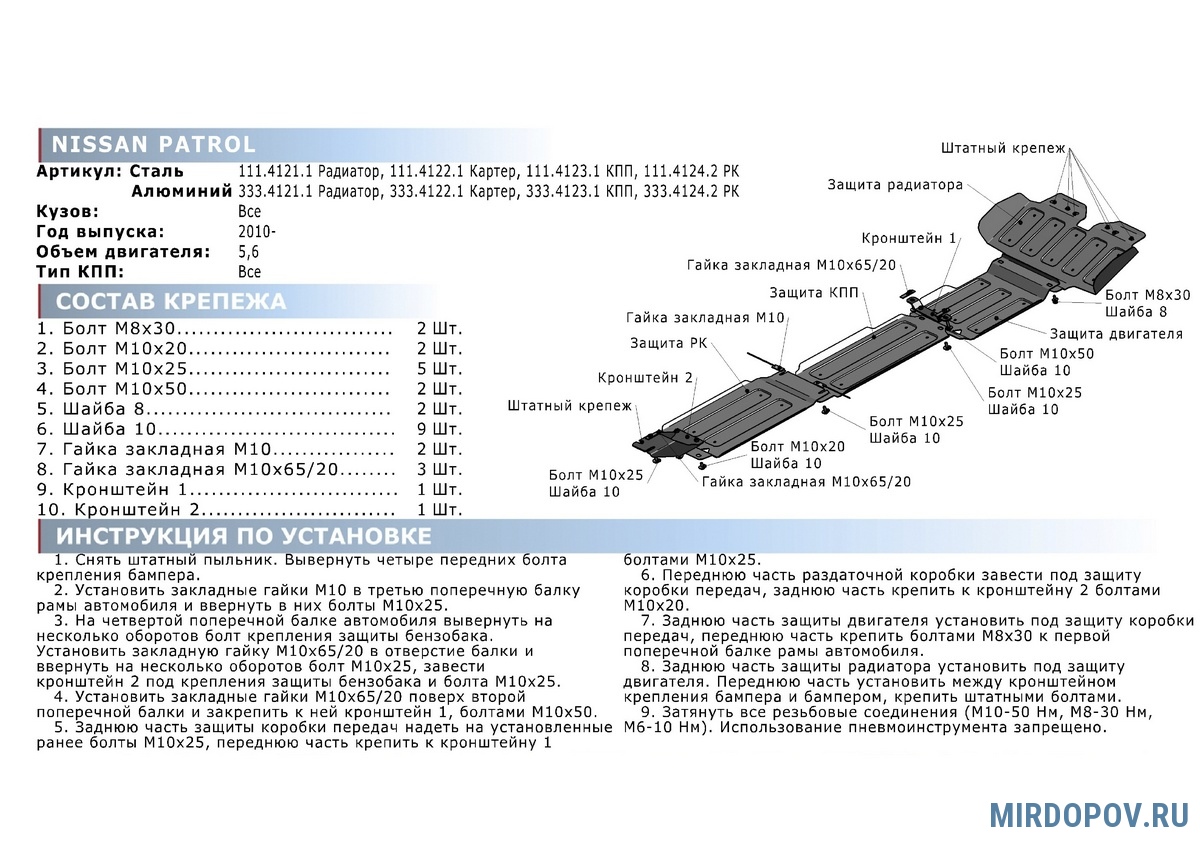 | Установка защиты картера, КПП, дифференциала, раздатки, радиатора - 1 деталь | 1000 руб. |