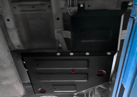- Наличие технологических отверстий для беспрепятственной замены технических жидкостей и масел. Это позволяет сэкономить время и силы за счет отсутствия необходимости в демонтаже защиты.