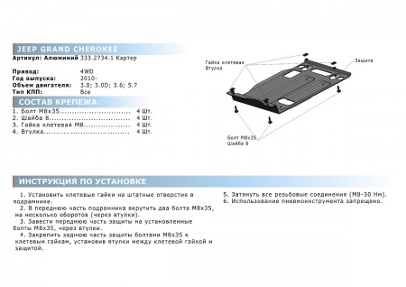 | Установка защиты картера, КПП, дифференциала, раздатки, радиатора - 1 деталь | 1000 руб. |
