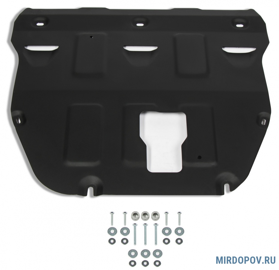 - Наличие технологических отверстий для беспрепятственной замены технических жидкостей и масел. Это позволяет сэкономить время и силы за счет отсутствия необходимости в демонтаже защиты.